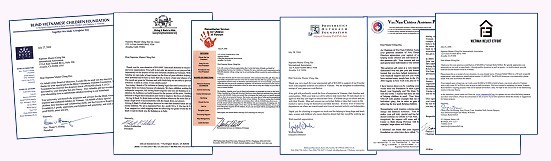 失明悠乐儿童基金会、重新还给孩童组织、悠乐儿童人道服务、义肢援助基金会、悠乐儿童援助计划与悠乐救援服务致予清海无上师的感谢函 |