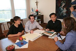 右起:世界会成员访问“失明悠乐儿童基金会”会长黄顺神父、约瑟夫.墨菲先生 (基金会顾问)、德斯塔.怀特女士(基金会顾问) |