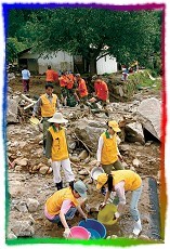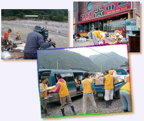韩国新闻组报导(原文为韩文) 2006年7月,台风及豪雨侵袭朝鲜半岛,摧毁了许多道路和村庄,造成了前所未见的严重灾情。在灾害发生期间,韩国同修迅速应变前往协助救灾。当道路暂时恢复通车后,同修组成的救援队立刻进入受创的村庄,提供日常必需品及协助灾区的复原工作。