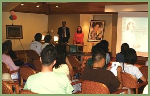 密尔比达市是一座发展完善的新兴城市,许多居民都是年轻的专业人士,当他们受邀参加讲座时,都很高兴地同意。其中还有两位是来自其他城市的真理追寻者,他们之前就参加过讲座,此后便经常参加师父的灵性讲座,并诚心地等待印心。 有一位盲友甚至远从城外搭计程车前来,只为了参加我们在8月份所举办的灵性讲座。她告诉同修,自己这半年多来一直都是师父广播节目的忠实听众。虽然她无法欣赏到画面影像,但却很喜欢聆听师父在纽约联合国的讲经DVD《超世界的奥秘》。这位可爱的女士非常诚心地报名学习方便法,并索取更多资料,以便让家人念给她听。因此同修欣然送她一本样书和一些新闻杂志,让她带回家。