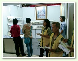 由于上帝完美的安排,我们得以取得一处宽敞的户外场地。我们设置了大荧幕、投影机,并准备许多座椅,让来宾能坐下来观赏师父的开示影片,而不会妨碍到其他人的通行。许多来宾深为我们摊位所吸引,前来询问有关师父与观音法门的讯息。我们总共发出了20多万份“您也可以选择这样的生活”传单与一千本样书。 许多真理追求者聚精会神地观赏师父的开示影片直至深夜。有位观众看到师父的头部周围发出很亮的光,因此非常渴望跟随师父修行。很多来宾对师父的开示留下深刻的印象,并殷切地拿取样书回家阅读。师父的教理涵盖所有宗教,令一位在场执勤的回教军人为之动容。他想请购一片师父的开示DVD,可是我们都卖光了!我们答应他隔天带来,但是他说他会被分派到其他地区,可能无法前来。然而令人惊讶的是,隔天他依旧设法前来,就是为了请购师父的DVD。他收到之后露出非常愉快的神情。 新闻媒体、民众与其他团体对我们在雅加达展览会的活动给予许多正面的评价。有些人回来进一步询问有关我们团体的讯息,我们对动物的爱与慈悲似乎感动了他们。我们遇到一位长年茹素的男士,他看了传单后,又回来帮忙我们发传单。
