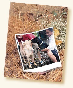 住在福尔摩沙丰原市的王姓夫妇在公老坪山区的蜈蚣崖附近经营一家茶坊,二年前的某一天,王姓居民听到崖下传来狗的哀嚎声,循声发现被弃置在崖下的白色小公狗顺子,便带回收养。当时顺子才几个月大,而且还受着伤,不过它的伤势很快就复元了。 好动的顺子喜欢到崖下奔跑。也许是对那种受伤待援的境遇感同身受,在半年前,顺子曾两度从崖下叼回小狗,不过当主人发现时,被带回来的小狗都已不幸死亡。当顺子第三次叼回一只小黑狗时,主人及时发现,并注意到小狗的腹部有一道很长的刀伤,于是立刻带它到动物医院急救。 兽医原先认为这只小黑狗救回的机会不大,但最后在细心照顾下,生命力强韧的小黑狗奇迹似地康复。王姓夫妻希望小黑狗以后能平平安安,因此将它取名为“平平”。平平刚开始会怕顺子,甚至听到它的吠声都会发抖,但不久之后,平平不再畏惧顺子,每次看到它时,还会扑过去紧紧抱住,并不断地舔着顺子,仿佛感谢它的救命之恩。顺子当然也热情回应,两条狗就这样经常抱在一起,令人看了倍感温馨。