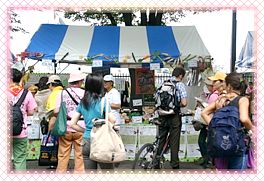 除了参与京都地区的活动,东京小中心又在国连大学的展示会场内,放置“您也可以选择这样的生活”传单、扇子、文件夹及师父的样书,供来宾自由索阅,另外又参加在东京最著名、面积最大的室外会场--代代木公园举行的为期两天的“东京国际素食文化节2006”。 在国连大学的展示会场,有位来宾在留言簿上写道:“我虽然已开始吃素,但为能否坚持下去而担心,看了传单的内容后,从中得到了很大的鼓励,虽然外面的世界有各种诱惑,但是我在这里获得了努力坚持下去的决心”。有不少人在国连大学展示会场看过师父的讯息及传单,后来参加代代木公园的素食文化节时,又看到我们的摊位,他们都显得十分高兴。